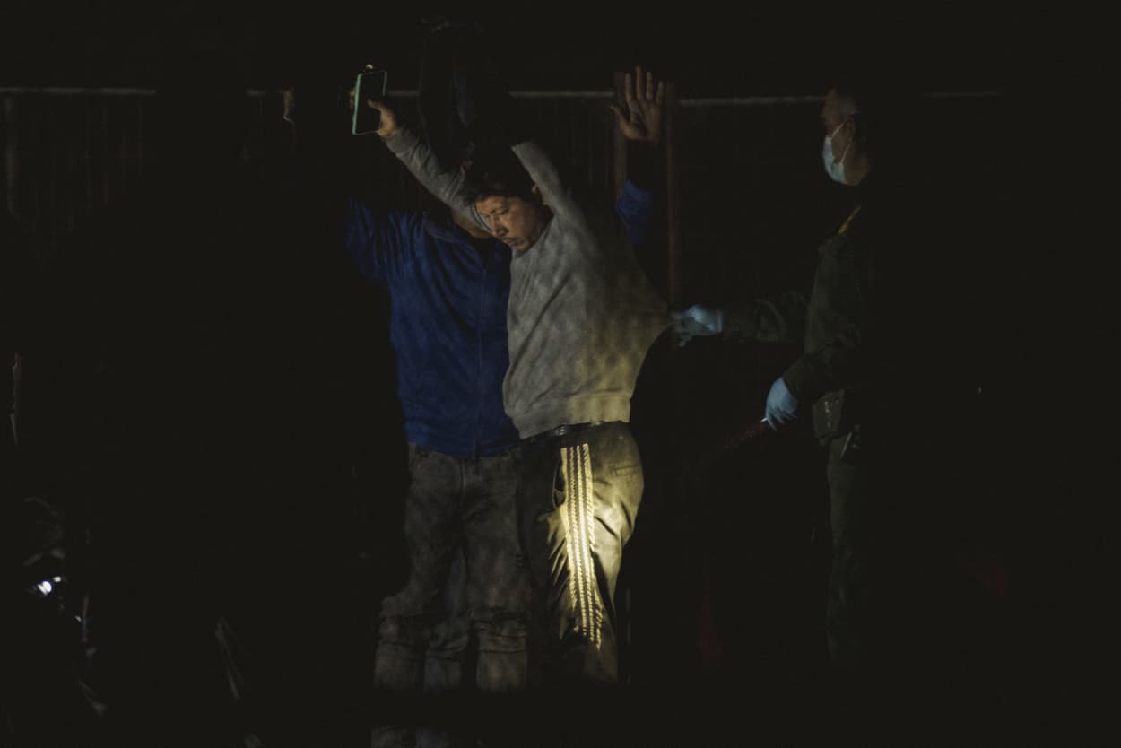 A migrant is patted down by Border Patrol agents at gate 42 in El Paso on May 12, 2023. Adria Malcolm for NBC News