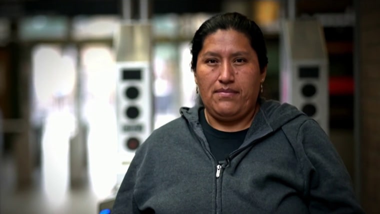 NBC News approached several women on subway platforms in Manhattan and Queens over the past year asking them to share the stories of their arrivals in the U.S. All refused out of fear that their children could be taken away or that they could face a steep fine. With help from Algun Dia, an outreach project specifically aimed at helping migrant vendors, NBC News was put in contact with a woman named Lorena who arrived in the U.S. last year with her husband and their 3-year-old daughter and has applied for asylum and work authorization. While she waits for that legal permission, she has been earning about $50 a day selling fruit while carrying her daughter on her back.