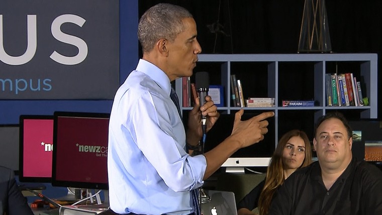 Obama's town hall was at Cross Campus, a place that brings together people who have launched startup companies and venture capitalists.