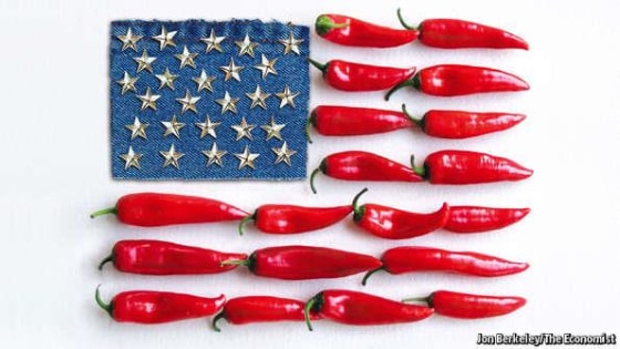 While the British magazine's series of articles was as broad and as comprehensive a collection of articles on Latinos one is likely to find in a European magazine - especially one with the Economist's influential, global readership - what drew the greatest attention was the cover picture, an American flag fashioned with red chile peppers for stripes.