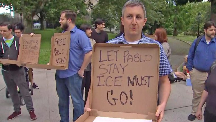 At a rally in support of Villavicencio in Bay Ridge, Brooklyn, on Wednesday, demonstrators blocked a street and chanted, "Free, free Pablo," according to NBC New York. The New York Police Department confirmed to NBC News that it had issued seven summonses for disorderly conduct to protesters.