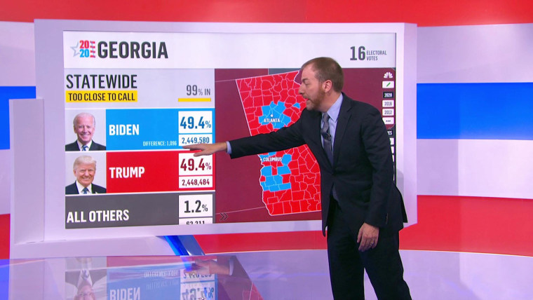 All eyes are on five states — Pennsylvania, Georgia, North Carolina, Arizona, and Nevada — which NBC News has deemed either too close or too early to call.
