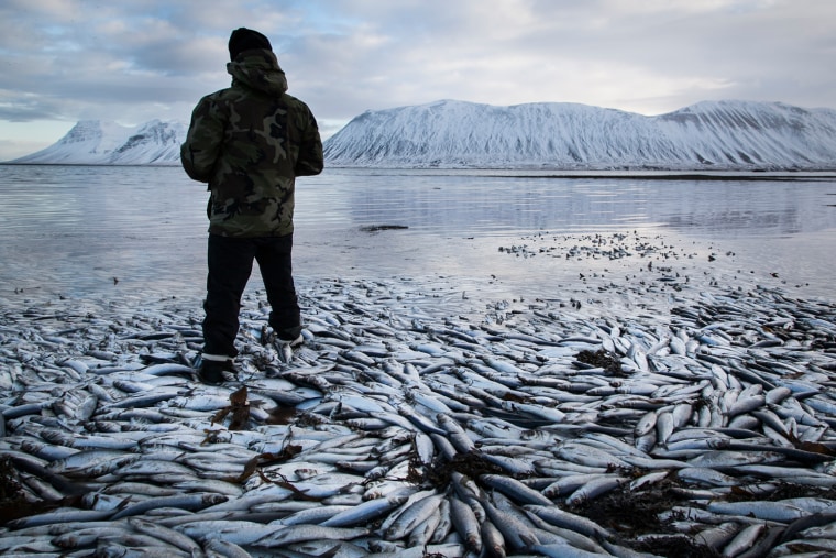 Dead herring are seen floating on Tuesday in Kolgrafafjordur, a small fjord in west Iceland, for the second time in two months.
