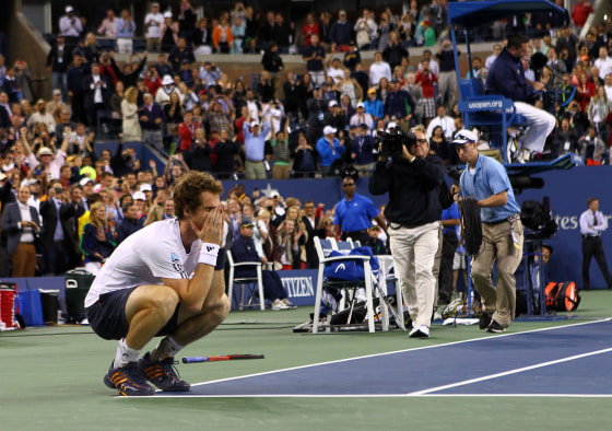 Andy Murray of Great Britain celebrates after defeating Novak Djokovic of Serbia in the men's singles final match on Day Fifteen of the 2012 US Open at USTA Billie Jean King National Tennis Center on September 10, 2012 in Flushing, New York City. Murray defeated Djokovic 7-6, 7-5, 2-6, 3-6, 6-2. Read the full story.