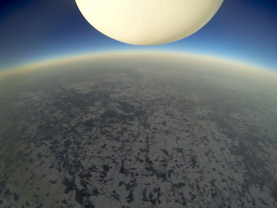 Cameras captured the Grandville High School RoboDawgs' balloon floating through Earth's upper atmosphere during its ascent on Dec. 28, 2013. The Grandville RoboDawgs’ first winter balloon launch reached an estimated altitude of 130,000 feet, or about 25 miles, according to coaches Mike Evele and Doug Hepfer. See more pictures from above and beyond in the Month in Space slideshow.