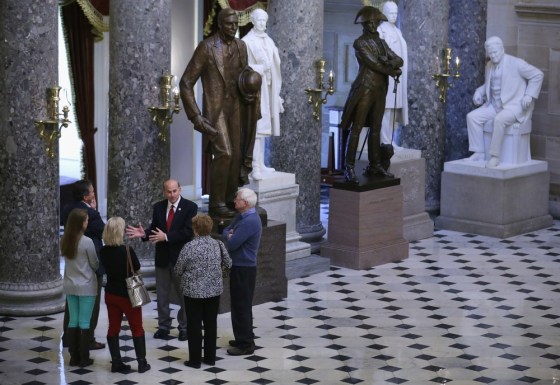U.S. Rep. Louie Gohmert, R-TX, facing camera, gives a tour of the U.S. Capitol to tourists from Texas in Statuary Hall on Oct. 7 in Washington, D.C. Because the federal government partial shutdown has halted Capitol tours, guests can only see the Capitol while being escorted by their member of Congress. Other members of Congress also gave tours to their constituents.