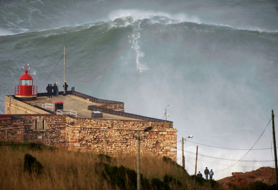 Surfer Garrett McNamara catches what could be the largest wave ever surfed, off the coast of Nazare, Portugal, on Jan. 29. The estimated 100-foot wave, if confirmed, would beat the current world record of 78 feet, which McNamara has held since 2011. According to SurferToday.com: