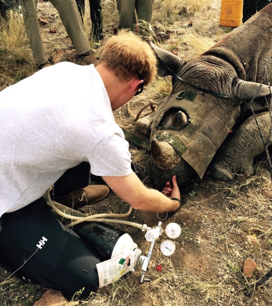 According to Prince Harry, he took on tasks such as "to monitor the heart rate and oxygen levels and help stabilize" rhinos while he was working with rangers and veterinarians in Namibia. He also took blood and tissue samples from the rhinos and did de-horning.