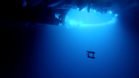 A free-swimming robot submarine maneuvers beneath sea ice in Eastern Antarctica in this undated photo made available on Oct. 11, 2012. Scientists have produced the first three dimensional map of the surface beneath Antarctic sea ice, helping them better understand the impact of climate change on Antarctica. The team of scientists from eight countries has used a robot submarine to chart a frozen and inverted world of mountains and valleys, allowing accurate measurements of the crucial thickness of Antarctic sea ice.