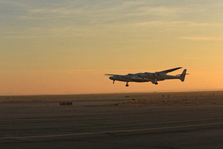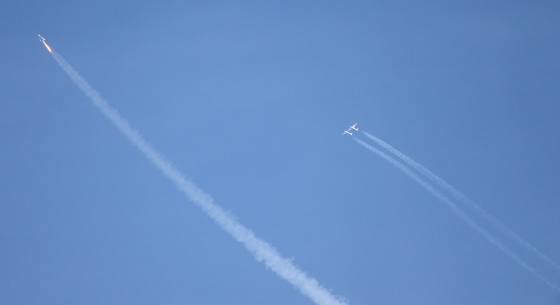The company's spaceship prototype was hooked beneath its wide-span WhiteKnightTwo carrier plane for takeoff from Mojave Air and Space Port at 7 a.m. PT (10 a.m. ET). Read full story