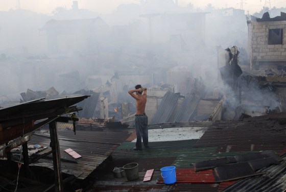 A resident looks at his burnt house after a fire razed some 400 houses in Quezon City, Metro Manila, the Philippines on Oct. 23.