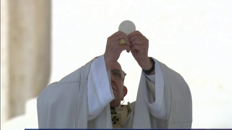 In a ceremony before tens of thousands of people in St. Peter's Square, Francis declared the two men saints along with five other lesser-known people who were born in Italy, Germany and Spain in the 18th and 19th centuries.