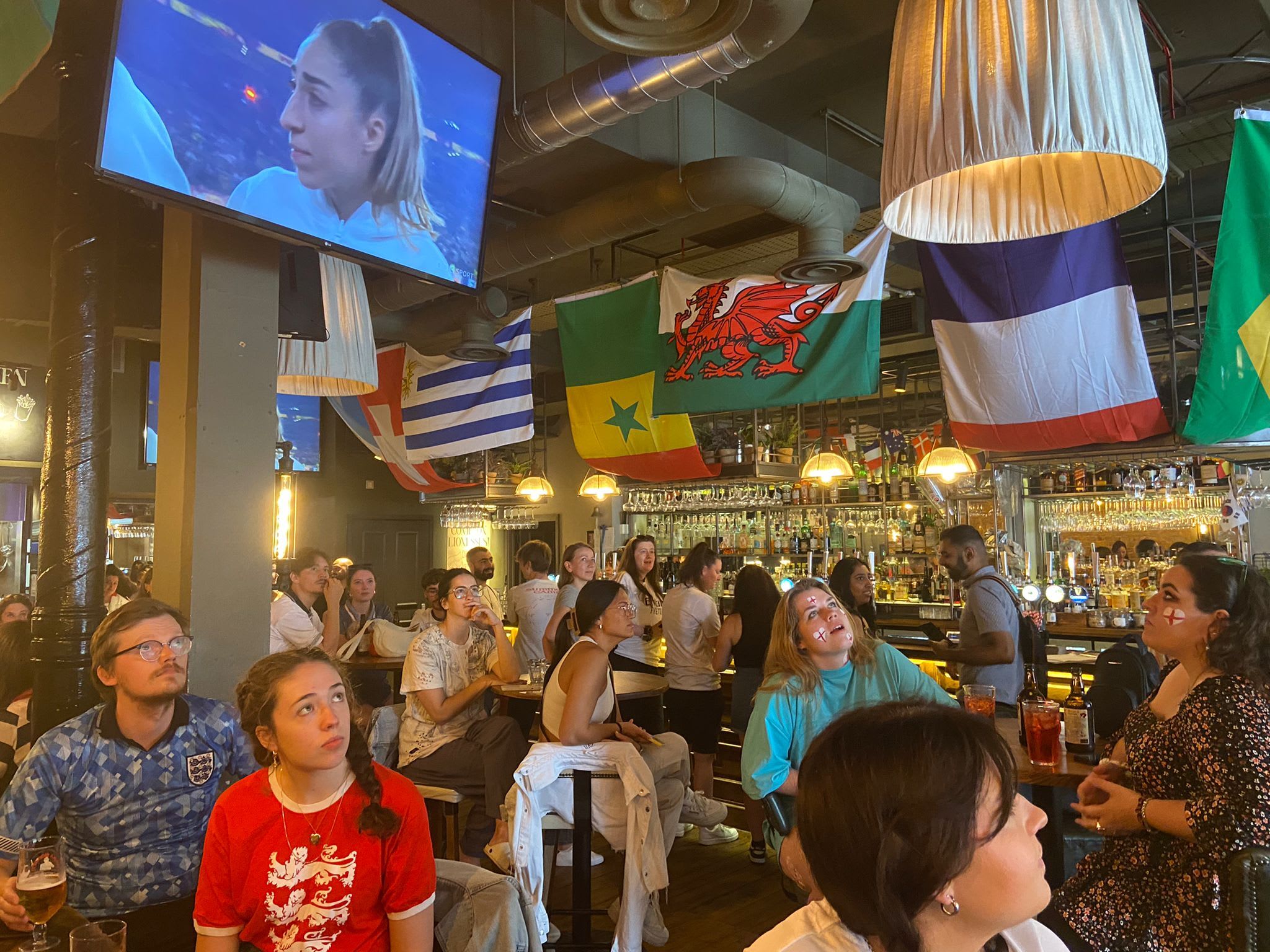 England fans watch the game at Bar Kick in east London. Kate Litman