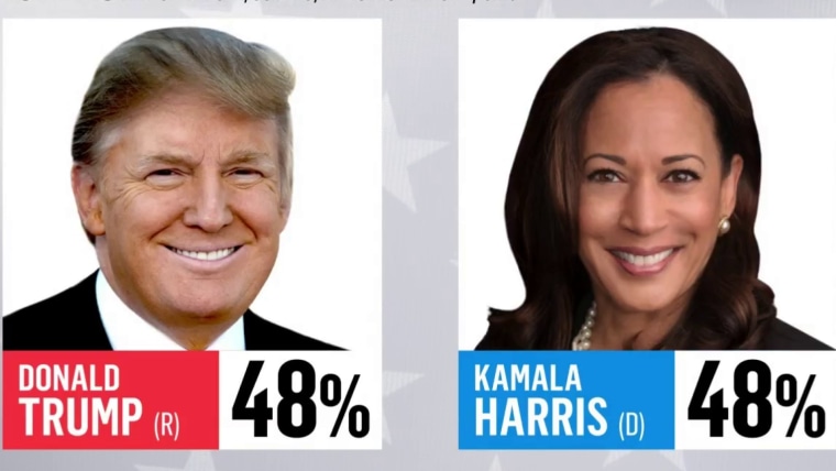 ➡️ Donald Trump and Kamala Harris are deadlocked in the latest national NBC News poll.