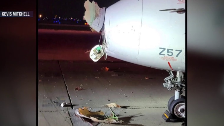 The plane, a Bombardier CRJ-200 operated by Air Wisconsin Flight 6209, was taxiing ahead of takeoff when the collision took place about 7:20 p.m., the Federal Aviation Administration said in a preliminary statement.