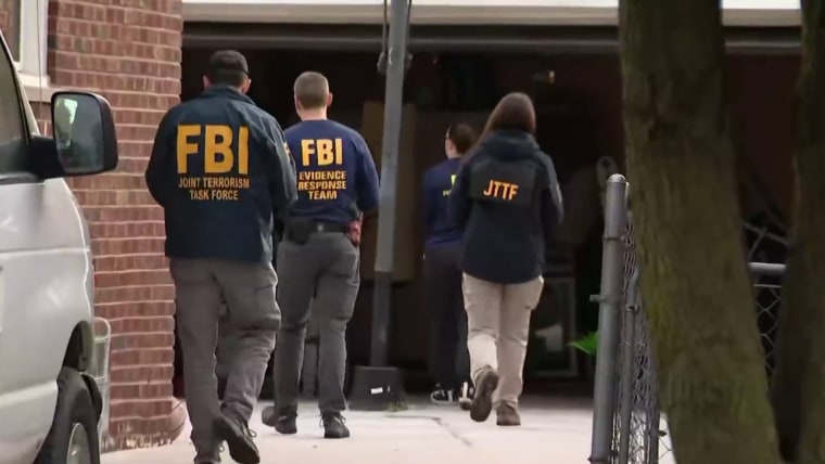 Members of the FBI Joint Terrorism Task Force search a home in Dearborn, Mich., on Friday. Jeff Kowalsky / AFP via Getty Images