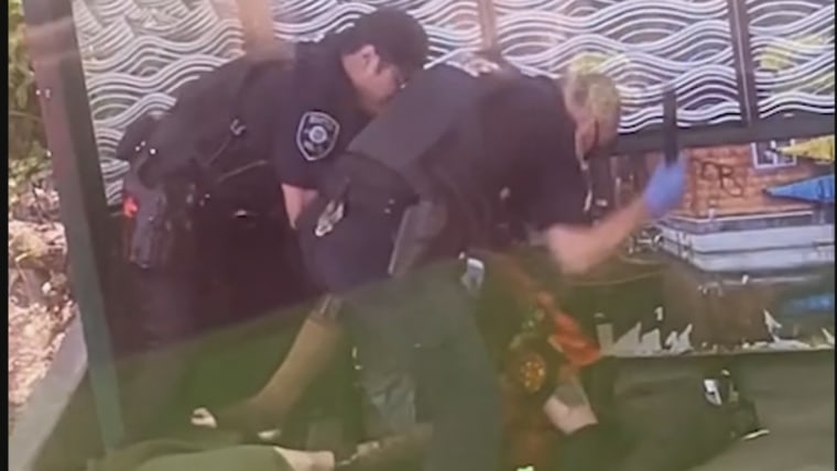 In the video, which was posted online and first reported by NBC affiliate KING 5-TV, two officers can be seen hitting a man with their batons last Friday afternoon. In the 40-second clip, one of the officers appears to grab the man’s hair before he uses a knee to pin him down.