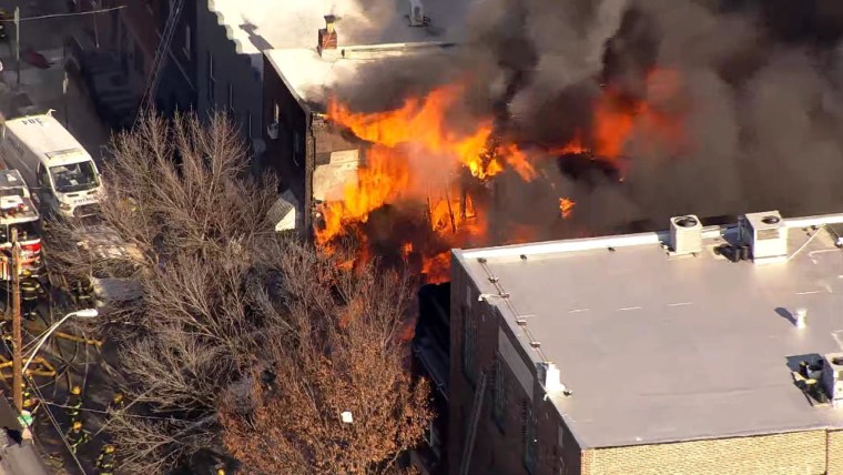 A number of row homes were involved in the three-alarm blaze. Three completely caved in and two were severely damaged, according to the Philadelphia Fire Department. Authorities had initially said at least two people were trapped after the roof of one home fell in.