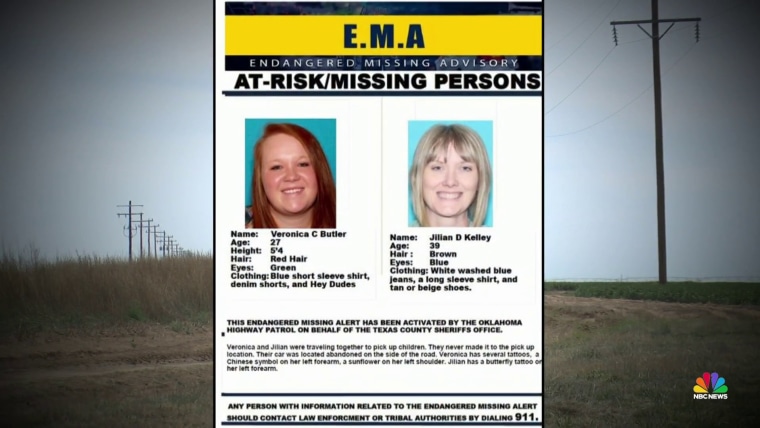 Butler and Kelley were the subjects of an “endangered missing advisory” issued by Texas County authorities on March 30 after a vehicle they were traveling in was found abandoned in a rural part of Texas County south of Elkhart, Kansas, the bureau said.