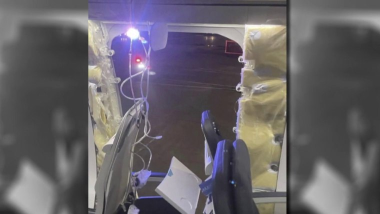 A photo from a passenger showed an entire panel missing from a side of the aircraft next to a row of seats. The panel, known as a door plug, detached from the plane at about 16,000 feet in the air, National Transportation Safety Board Chair Jennifer Homendy said during a news conference Saturday night.