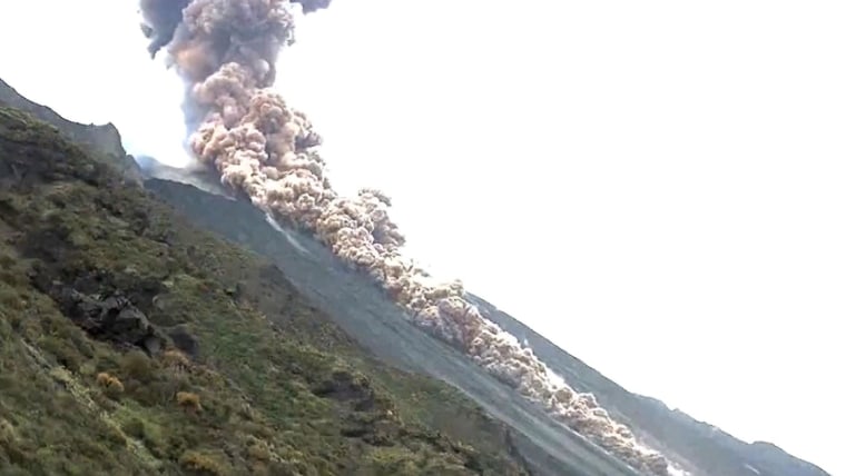 The explosion and "landslide events" lasted for a "duration of 4 minutes," according to Italy's National Institute of Geophysics and Volcanology.