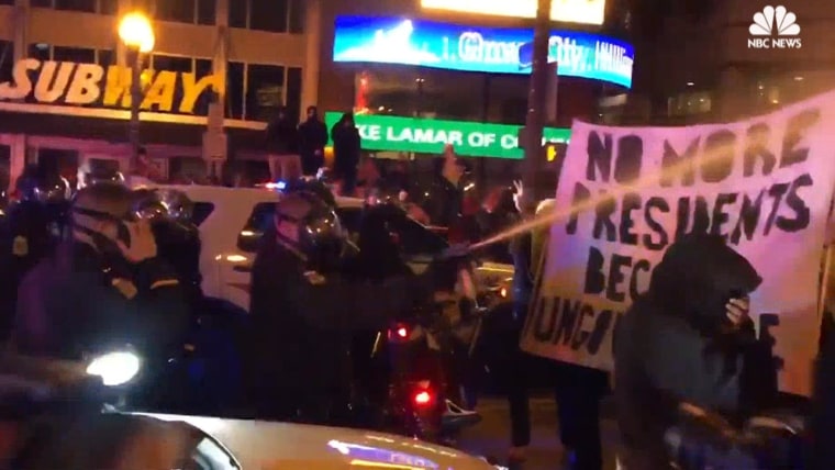 Police in Columbus, Ohio, used pepper spray to disperse a crowd of anti-Trump protesters after they did not get off the street.