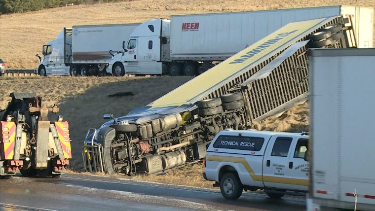 Freezing rain had affected the traffic along the interstate, the state patrol said.