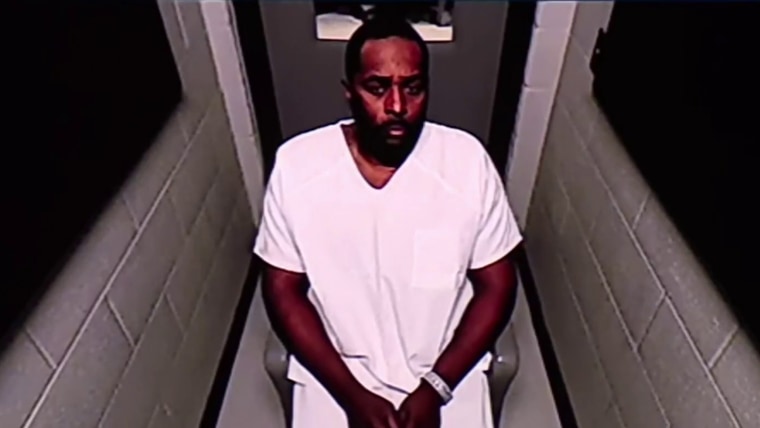 Moore appeared in a video feed wearing an all-white jail uniform and heard authorities explain how he allegedly lashed out over the romantic relationship that had ended.
