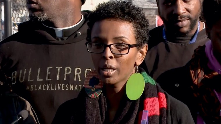 Monday’s shooting near the protest occurred after a group of men began confronting demonstrators and were being escorted away, a witness told NBC News.