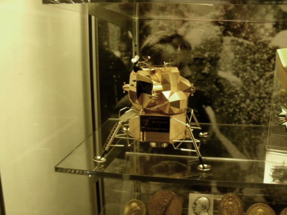Wapakoneta police confirmed in a press release that only three such replicas exist — one for each astronaut who completed the mission. The rare item, which measures about 5-inches high and roughly 4.5-inches square, was awarded to Neil Armstrong in Paris following the moon landing.