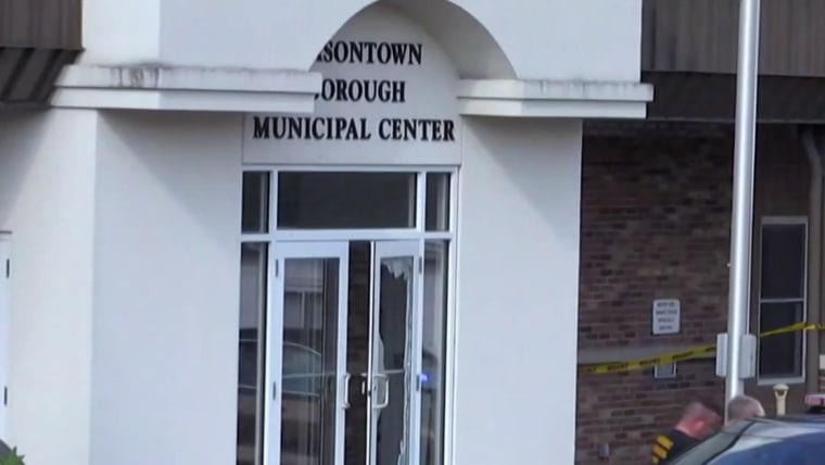 One of the people who was at the judge’s office for a hearing was hiding in a bathroom with his mother after the shooting when a woman ran inside bleeding from the arm, the man’s father told NBC affiliate WPXI of Pittsburgh.