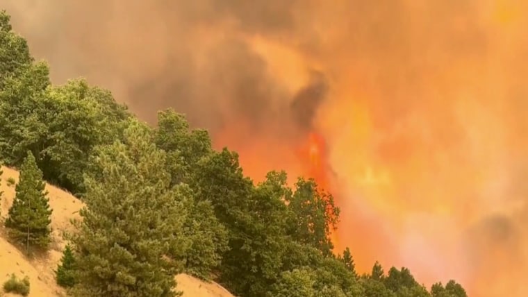 The fire's spread comes after a period of extreme heat in California with triple-digit temperatures.