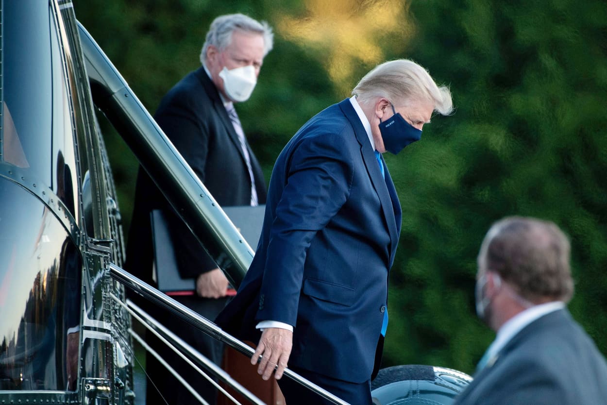 A masked President Trump emerged from the White House shortly after 6:15 p.m. ET on Friday to board Marine One, which flew him to Walter Reed National Military Medical Center.