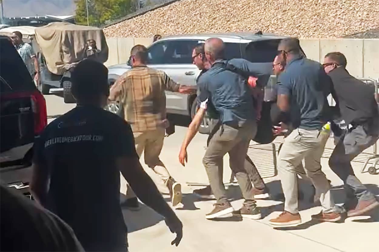 Conservative activist Charlie Kirk was carried to a waiting vehicle as chaotic scenes unfolded moments after he was fatally shot during an event at a Utah college campus. Local and federal law enforcement both said the shooting was a targeted attack.
