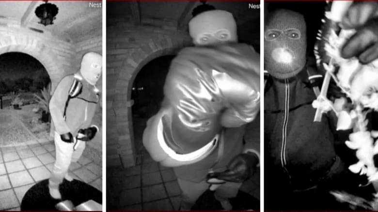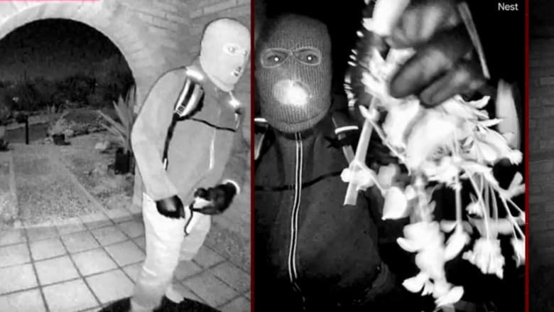 The images and videos show a person wearing gloves, a mask, khakis, sneakers and a backpack, appearing to tamper with the camera at Guthrie’s front door on the morning of her disappearance. One of the videos shows the individual walking up to the door with their head down.