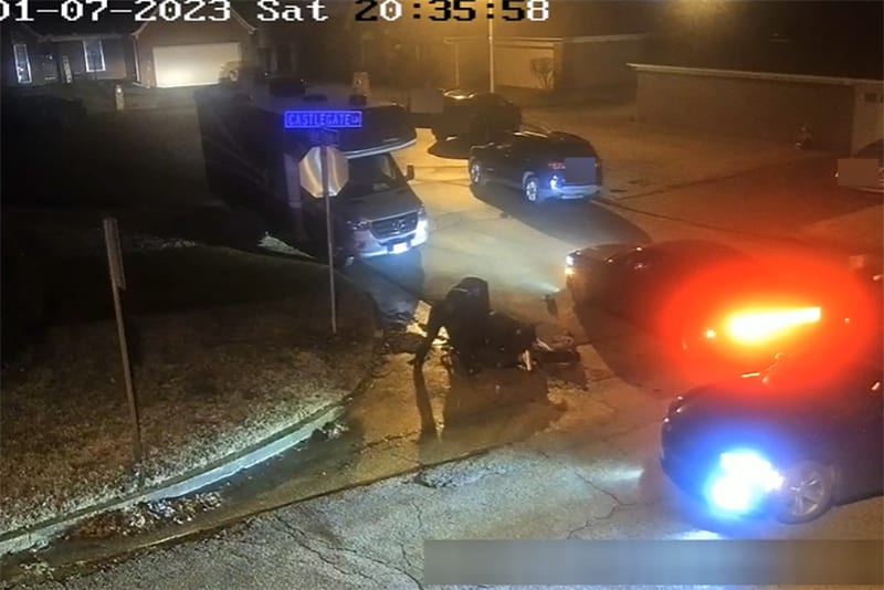 Memphis police officers surround Tyre Nichols as he lays on the ground, on Jan 7, 2023. City of Memphis
