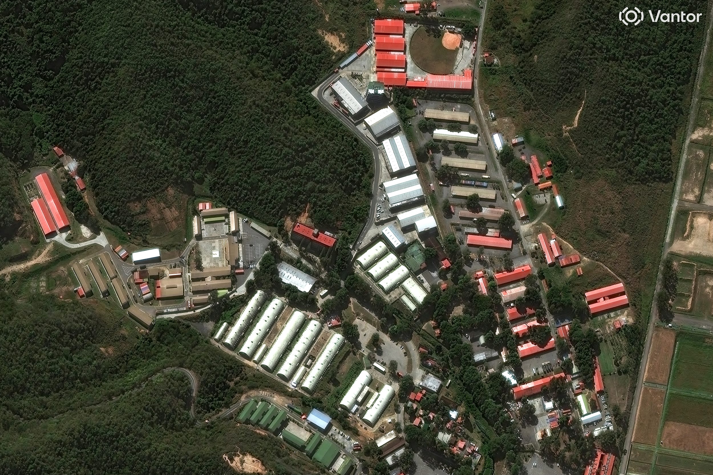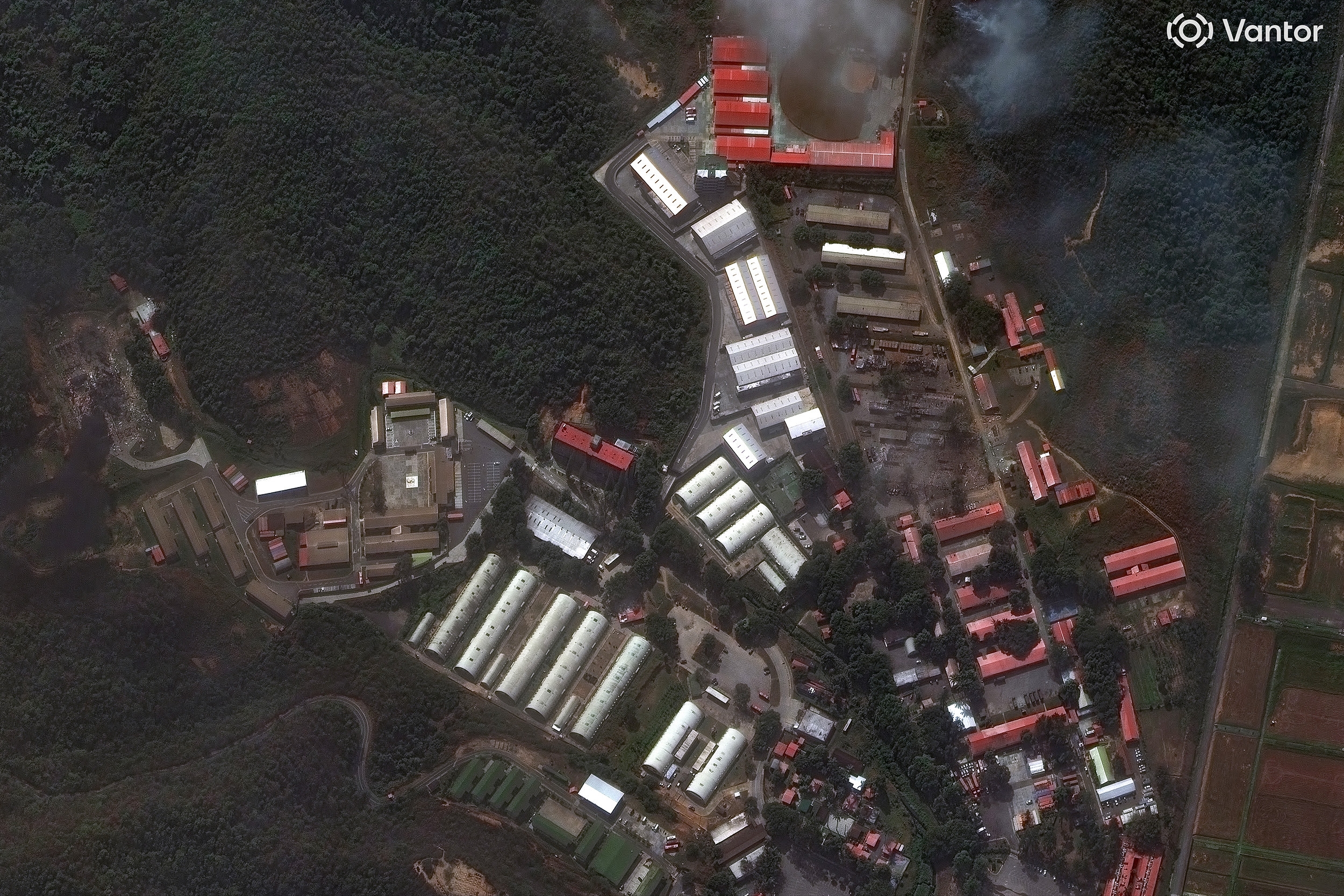 Fire is seen at Fuerte Tiuna, Venezuela's largest military complex, after a series of explosions in Caracas yesterday. STR / AFP via Getty Images