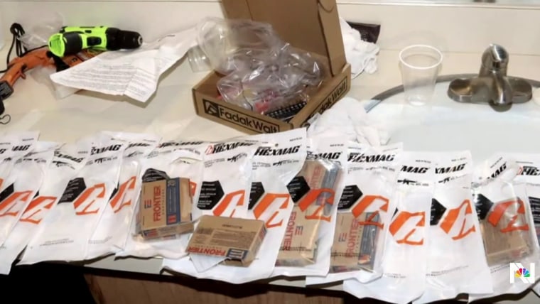 It also contained multiple firearms, including two shotguns, a clone of an AR-15 semiautomatic rifle but possibly in pistol form, numerous .223 caliber magazines that could feed an AR-15 clone, flame throwers, and a hatchet, he said.