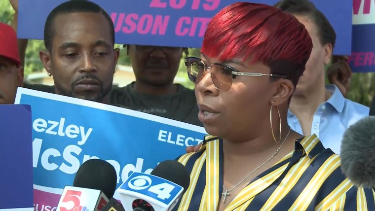 Lezley McSpadden announced her candidacy along Canfield Drive, near the exact spot where her son, who was black, was shot and killed on Aug. 9, 2014, by a white police officer.