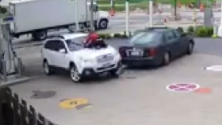 Melissa Smith, 27, was pumping gas in her SUV on Tuesday afternoon when an unknown and unsavory individual got out out of a black sedan and let himself into her car and took hold, she told NBC Milwaukee affiliate WTMJ.
