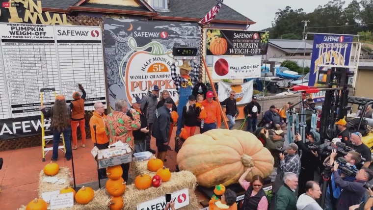 He said the giant pumpkin’s next stop will be in Southern California, where a team of professional carvers will do a 3D carve on it at a Halloween event.