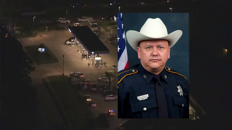 Amjad Latif, the manager of the gas station, told NBC News on Sunday that he was at the cashier's desk Friday night when customers began shouting that there had been a shooting. When he looked out the window, he saw a man shooting downward, he said.