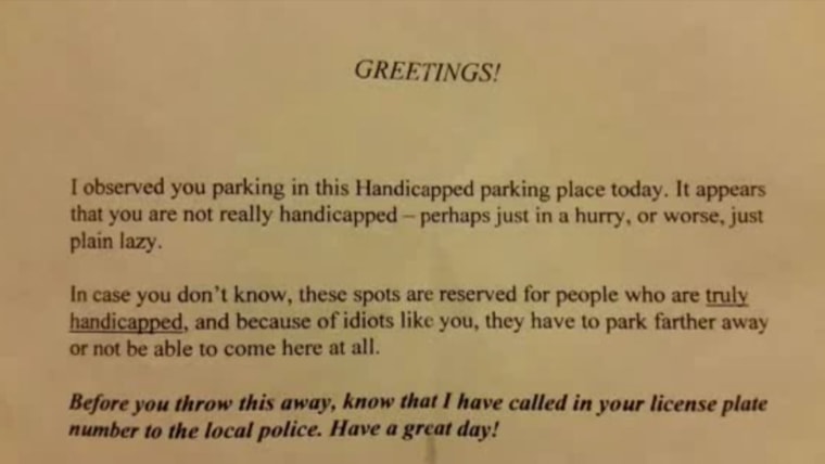 A mother and 10-year-old daughter are shocked to find note lambasting them for using a disabled parking spot. KUSA's Victoria Sanchez reports.