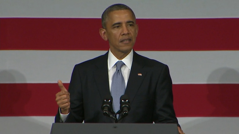 President Obama tells supporters in San Jose that Democrats are on the right side when it comes to education, the minimum wage, immigration and other issues.