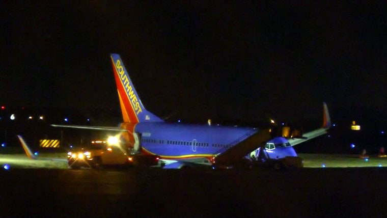 Southwest Airlines Boeing 737 flight from Houston rolled onto the grass as it was taxiing to its gate. Only minor injuries were reported.