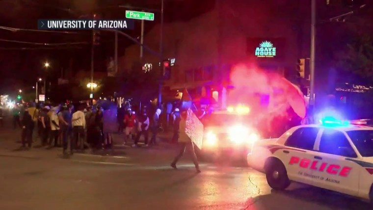 Four people were under arrest after that encampment became the site of a pitched battle late Thursday during which police fired what appeared to be rubber bullets and clashed with demonstrators who had pelted them with bottles, The Arizona Daily Star reported.