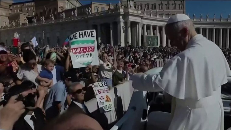 “When Pope Leo came around, he kept grabbing babies to bless them, but as soon as he saw the pizza, he had babies in his hand, but he’s still saying, like, ‘Get me that pizza, I want that pizza,’” Daley told NBC News NOW’s “Top Story with Tom Llamas.”