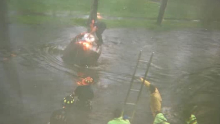 Camera rolls as firefighters try to help a woman escape SUV sinking in Florida floodwaters. WFLA's Chip Osowski reports.