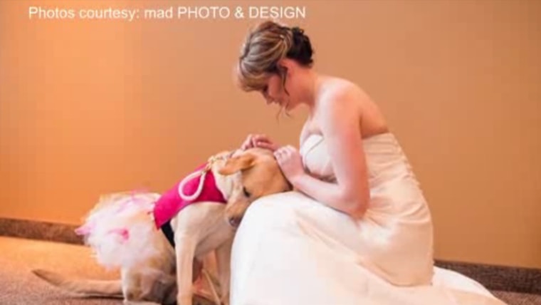Touching photo showing bride being comforted by her medical support dog moments before her wedding captures hearts. KDLT's Ricky Cody reports.