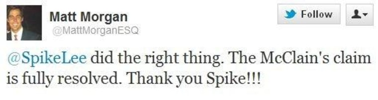 "Spike Lee did the right thing," the couple’s lawyer, Matt Morgan, tweeted. "The McClain’s claim is fully resolved. Thank you Spike!!!"